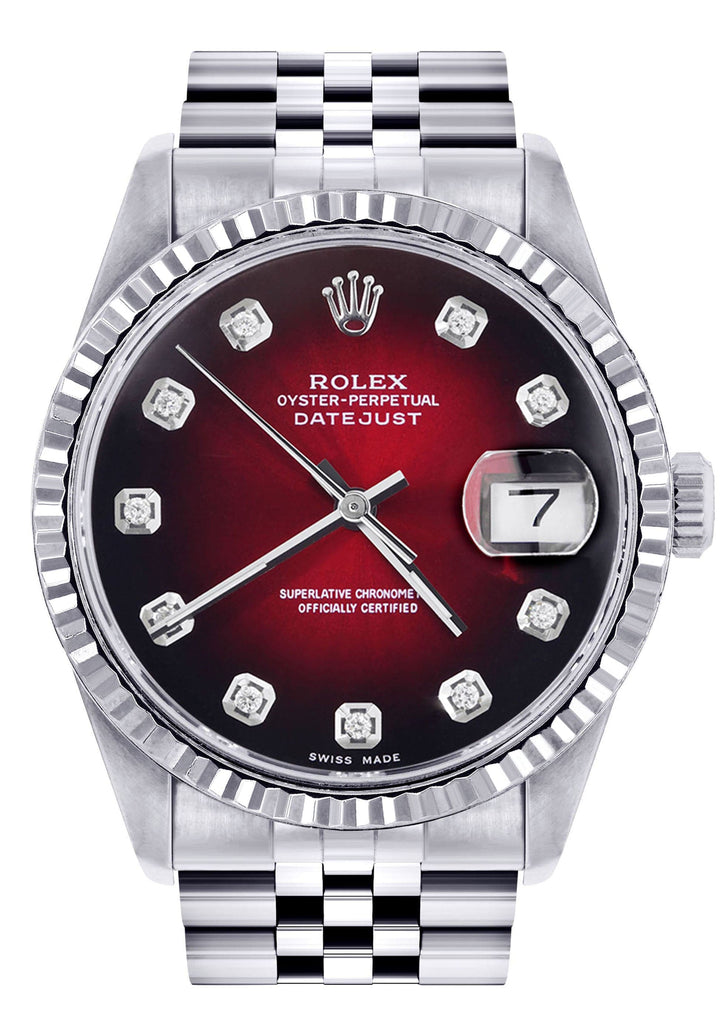 Mens Rolex Datejust Watch 16233 Two Tone | Fluted Bezel | 36Mm | Diamond Red Arabic Numeral | Jubilee Band