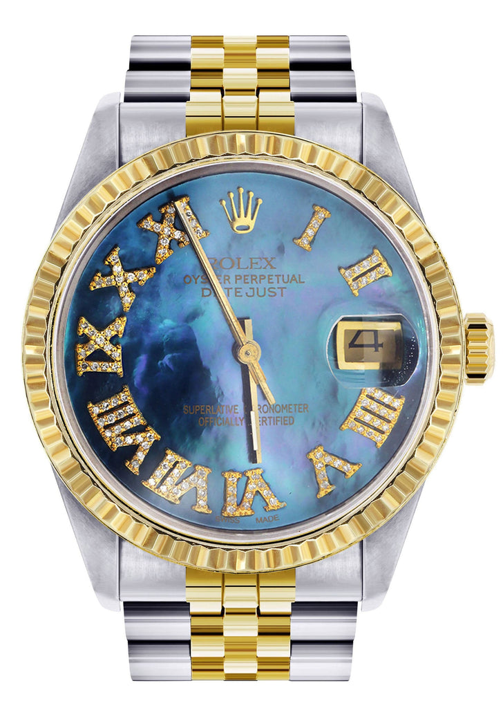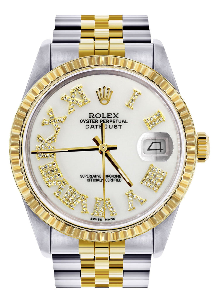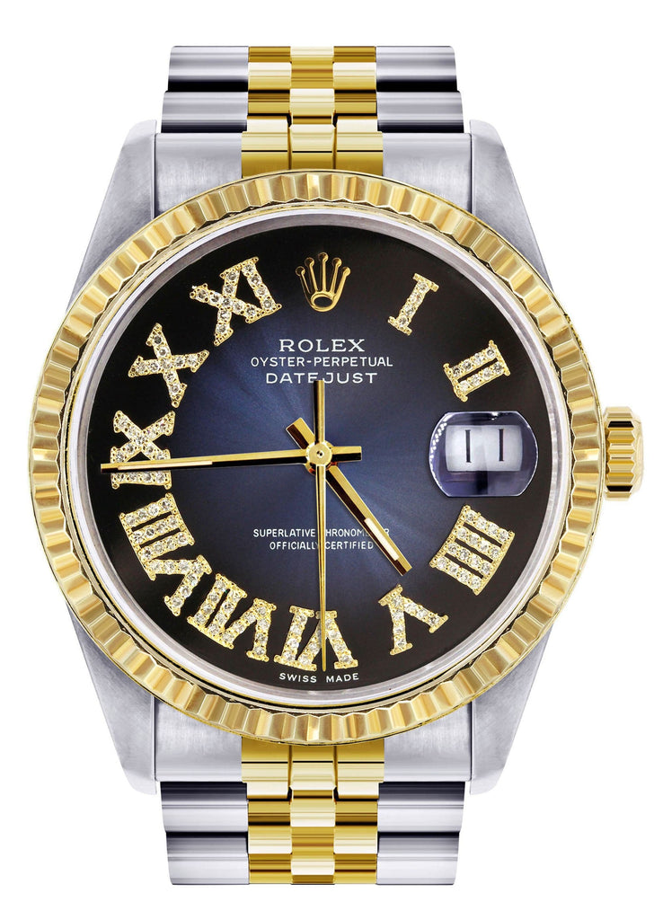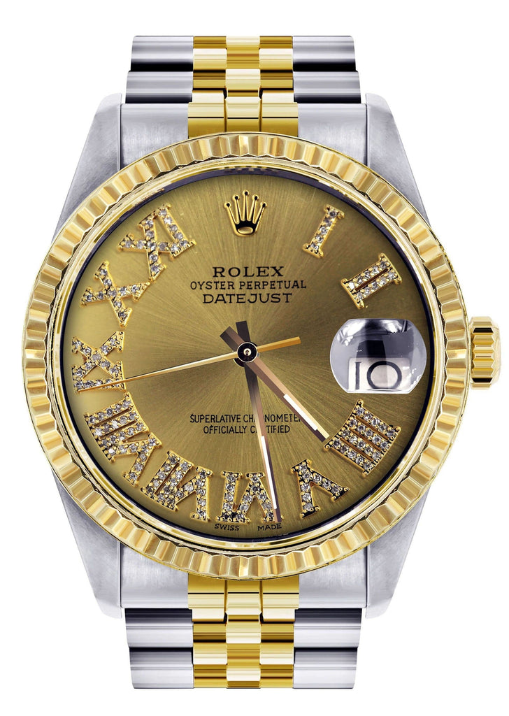 Mens Rolex Datejust Watch | 16233 | 36Mm | Diamond Gold Roman Numeral | Jubilee Band