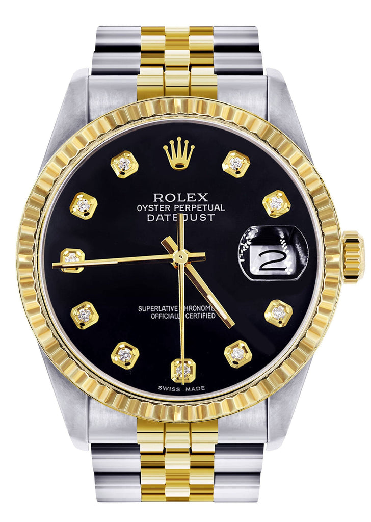 Mens Rolex Datejust Watch 16233 Two Tone | Fluted Bezel | 36Mm | Black Dial | Jubilee Band