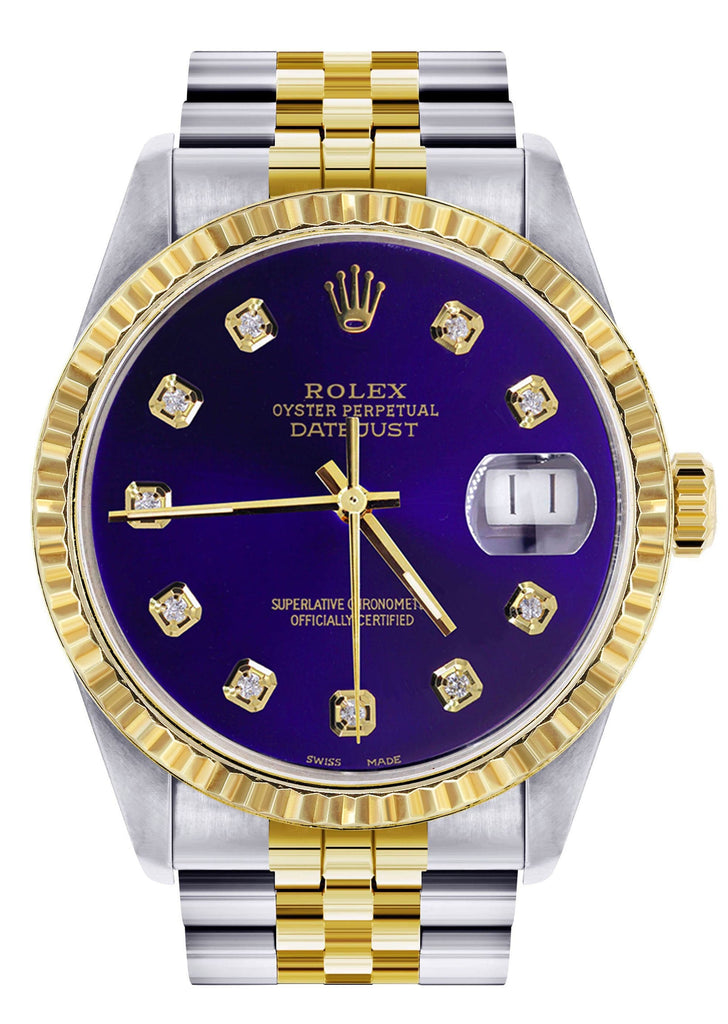 Mens Rolex Datejust Watch 16233 Two Tone | 36Mm | Purple Roman Numeral | Jubilee Band