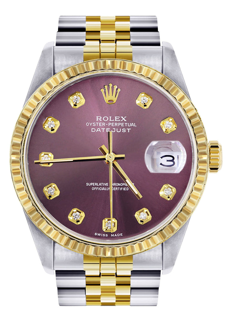 Mens Rolex Datejust Watch 16233 Two Tone | 36Mm | Purple Roman Dial | Jubilee Band