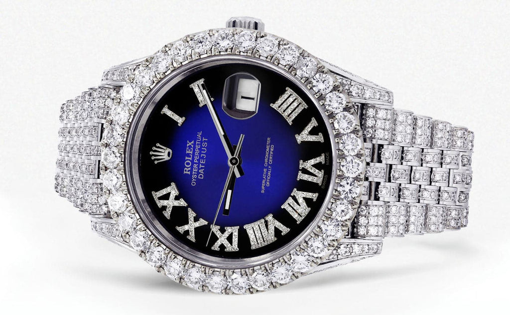 Diamond Iced Out Rolex Datejust 41 | 25 Carats Of Diamonds | Custom Blue Roman Diamond Dial | Jubilee Band