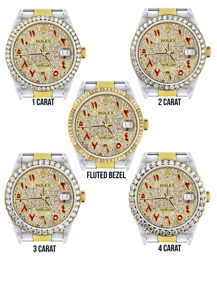 Diamond Gold Rolex Watch For Men 16233 | 36Mm | Custom Red Arabic Full Diamond Dial | Oyster Band