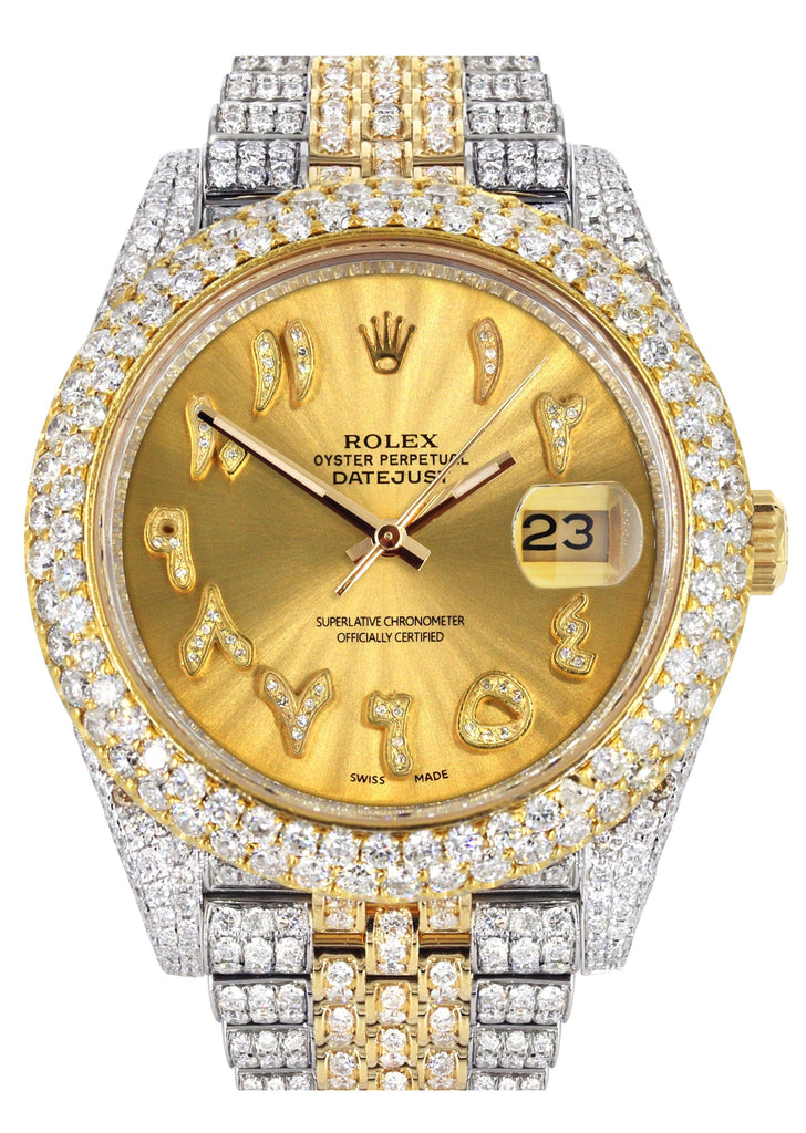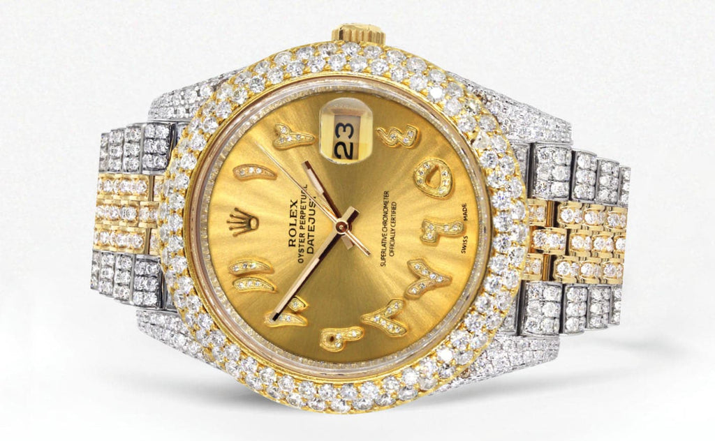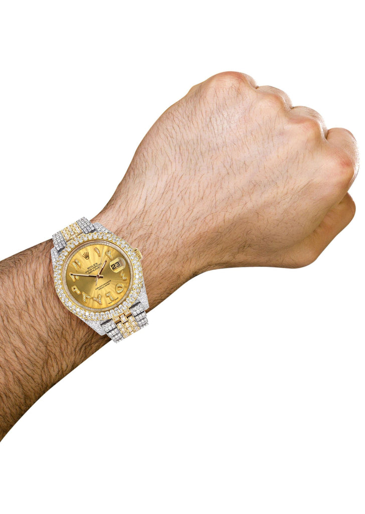 Diamond Iced Out Rolex Datejust 41 | 25 Carats Of Diamonds | Custom Gold Arabic Numeral Diamond Dial | Two Tone | Two Row | Jubilee Band