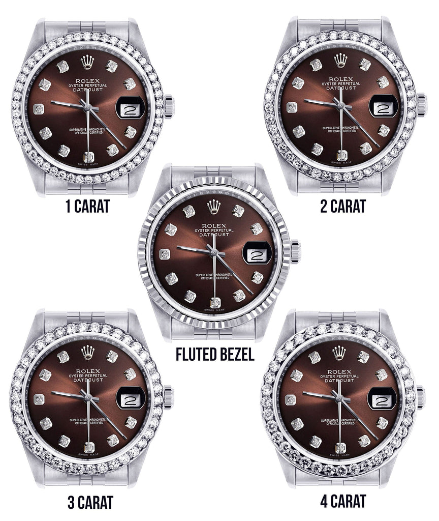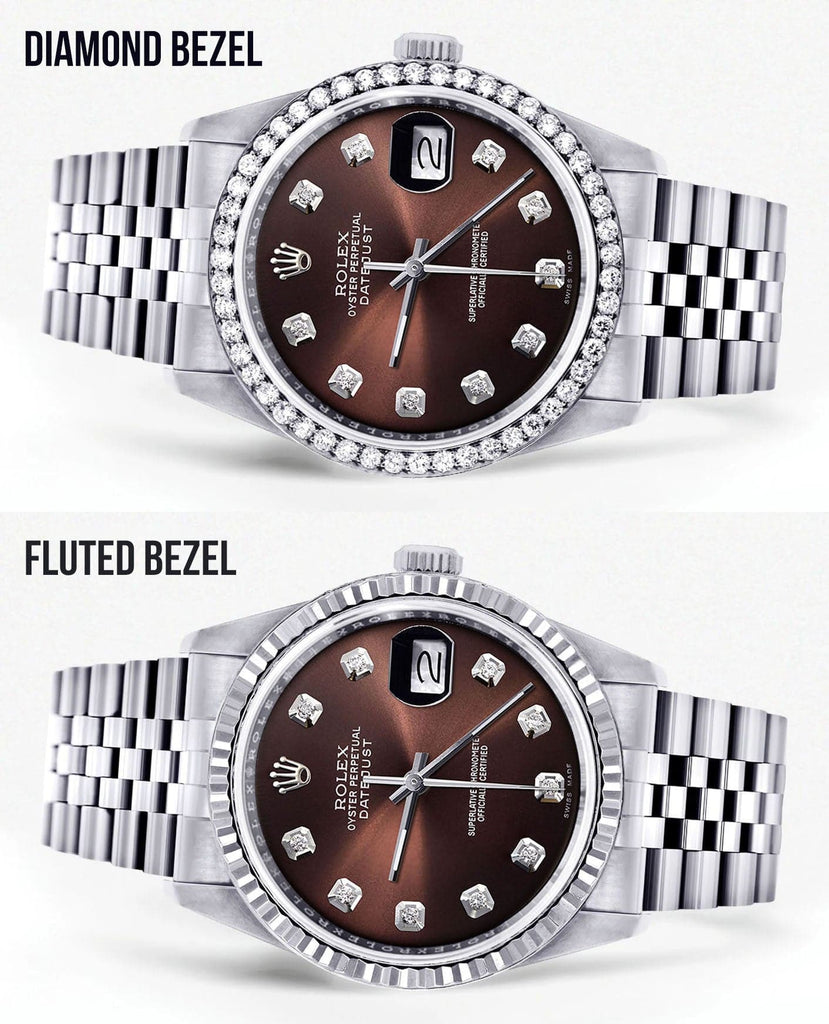 Rolex Datejust 36MM with a Jubilee Band. You can customize the bezel type between Gold Fluted Bezel or Diamond Bezel ranging from 1.00-4.00 carat. Below are more details of the watch