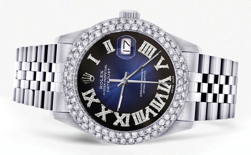 Mens Rolex Datejust Watch 16200 | 36Mm | Blue Black Roman Numeral Dial | Two Row 4.25 Carat Beze l Jubilee Band