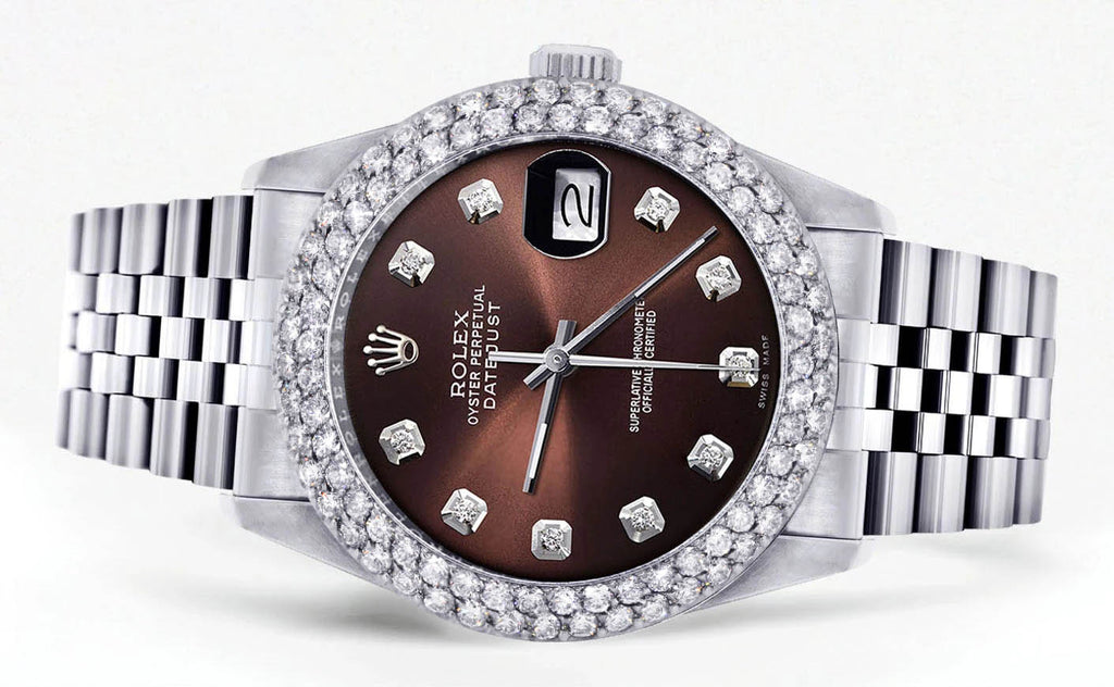 Mens Rolex Datejust Watch 16200 | 36Mm | Chocolate Dial | Two Row 4.25 Carat Bezel | Jubilee Band