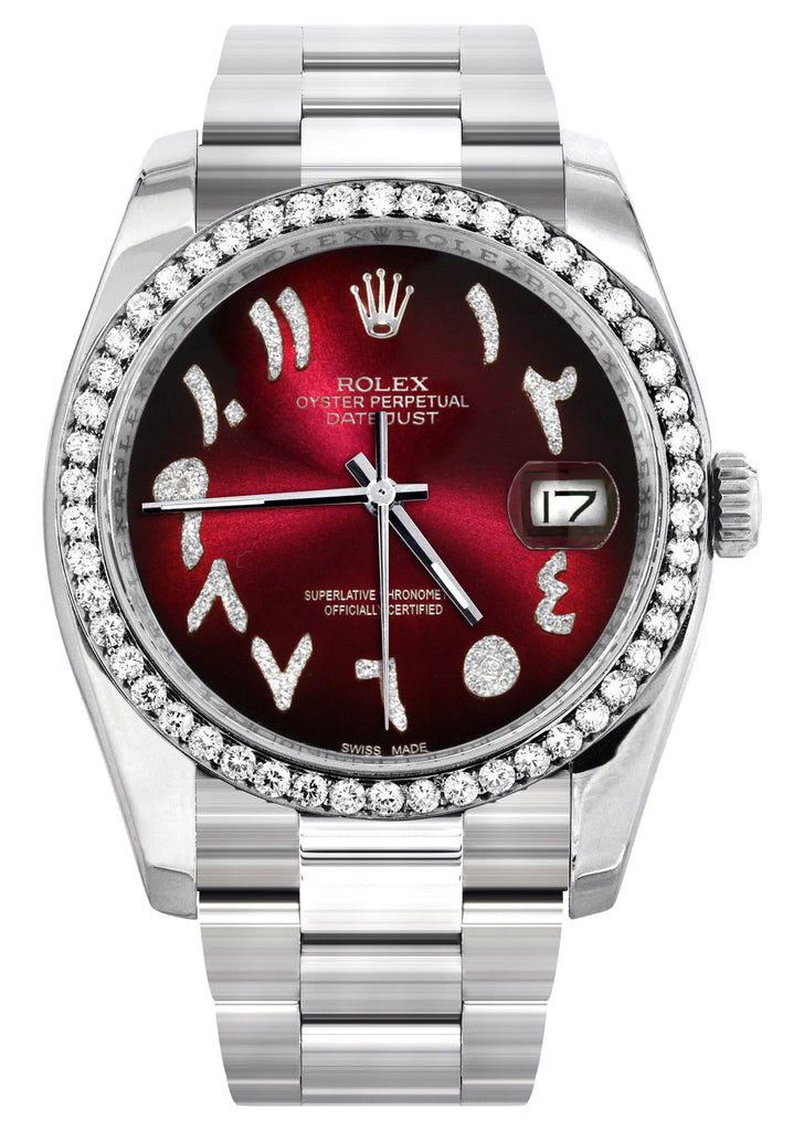 116200 | Rolex Datejust Watch | 36Mm | Red Black Arabic Dial | Oyster Band