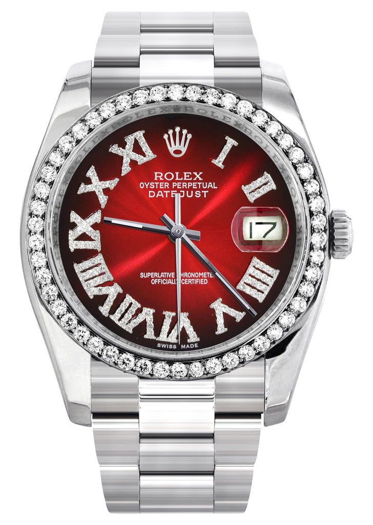 116200 | Rolex Datejust Watch | 36Mm | Red Roman Dial | Oyster Band