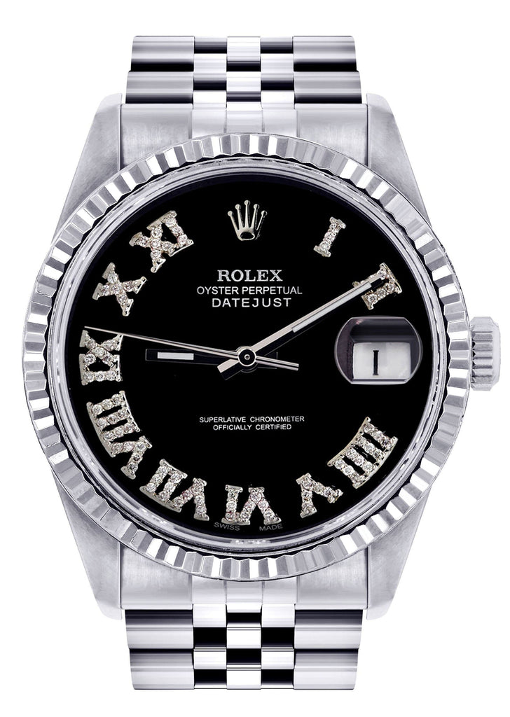 Diamond Mens Rolex Datejust Watch 16200 | 36Mm | Black Roman Numeral Dial | Jubilee Band