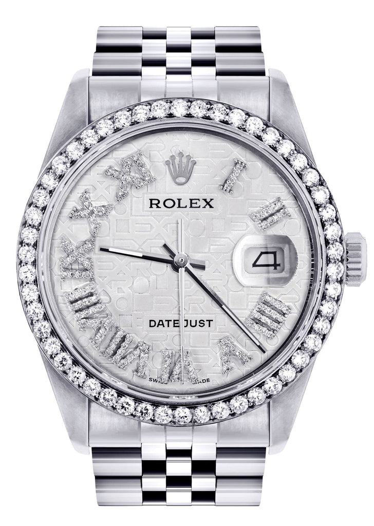 Diamond Mens Rolex Datejust Watch 16200 | 36Mm | Diamond Rolex Textured Roman Numeral Dial | Jubilee Band