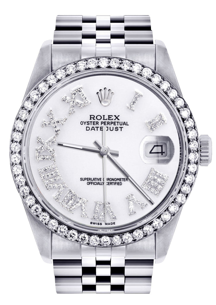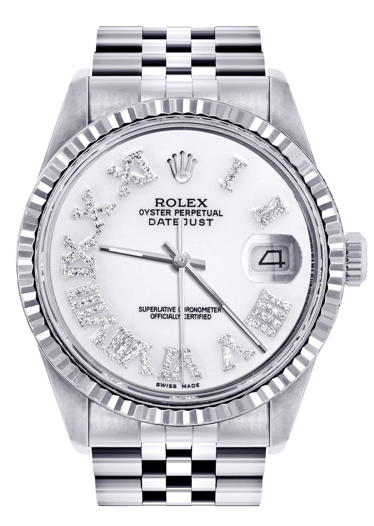Diamond Mens Rolex Datejust Watch 16200 | 36Mm | White Roman Numeral Dial | Jubilee Band