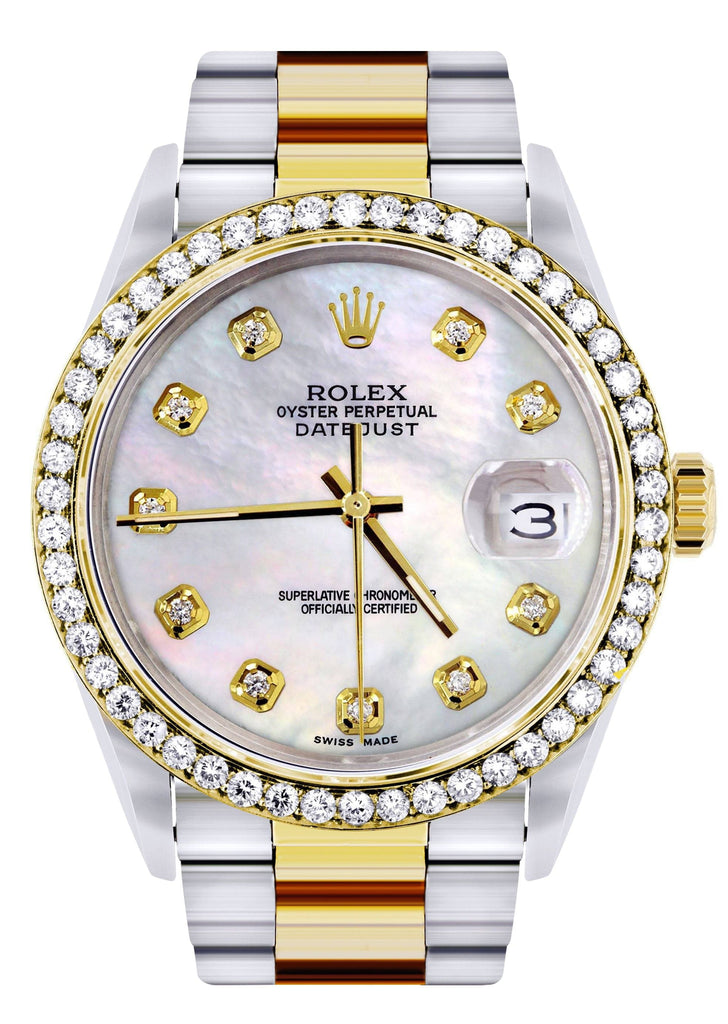 Diamond Gold Rolex Watch For Men 16233 | 36Mm | White Mother Of Pearl | Oyster Band