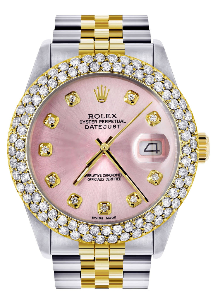 Diamond Gold Rolex Watch For Men 16233 | 36Mm | Custom Rose Dial | Two Row 4.25 Carat Bezel | Jubilee Band