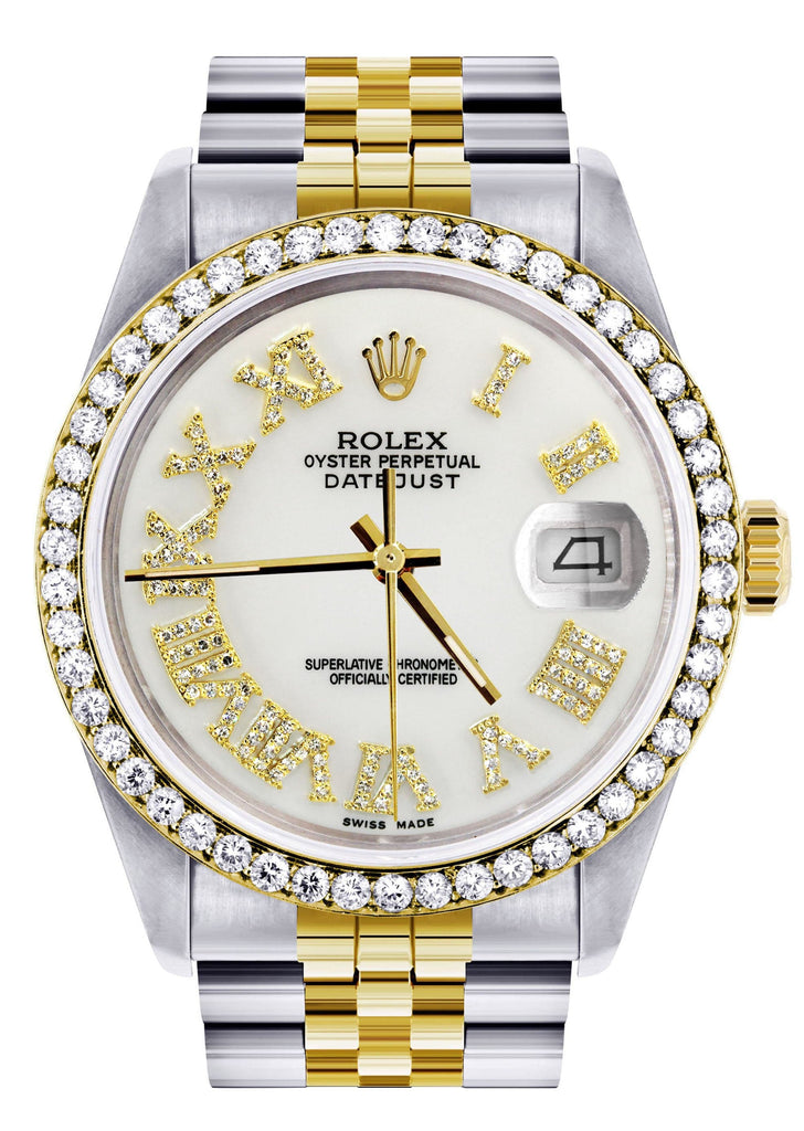 Iced Out Rolex Datejust 36 MM | Two Tone | 10 Carats of Diamonds | Full Diamond Gold Roman Diamond Dial