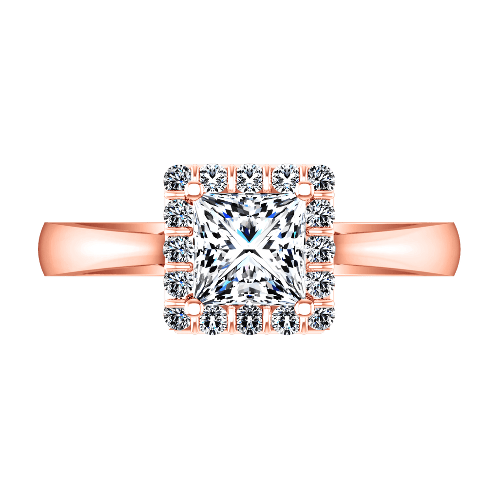 Halo Diamond Princess Cut Engagement Ring Lumiere 14K Rose Gold