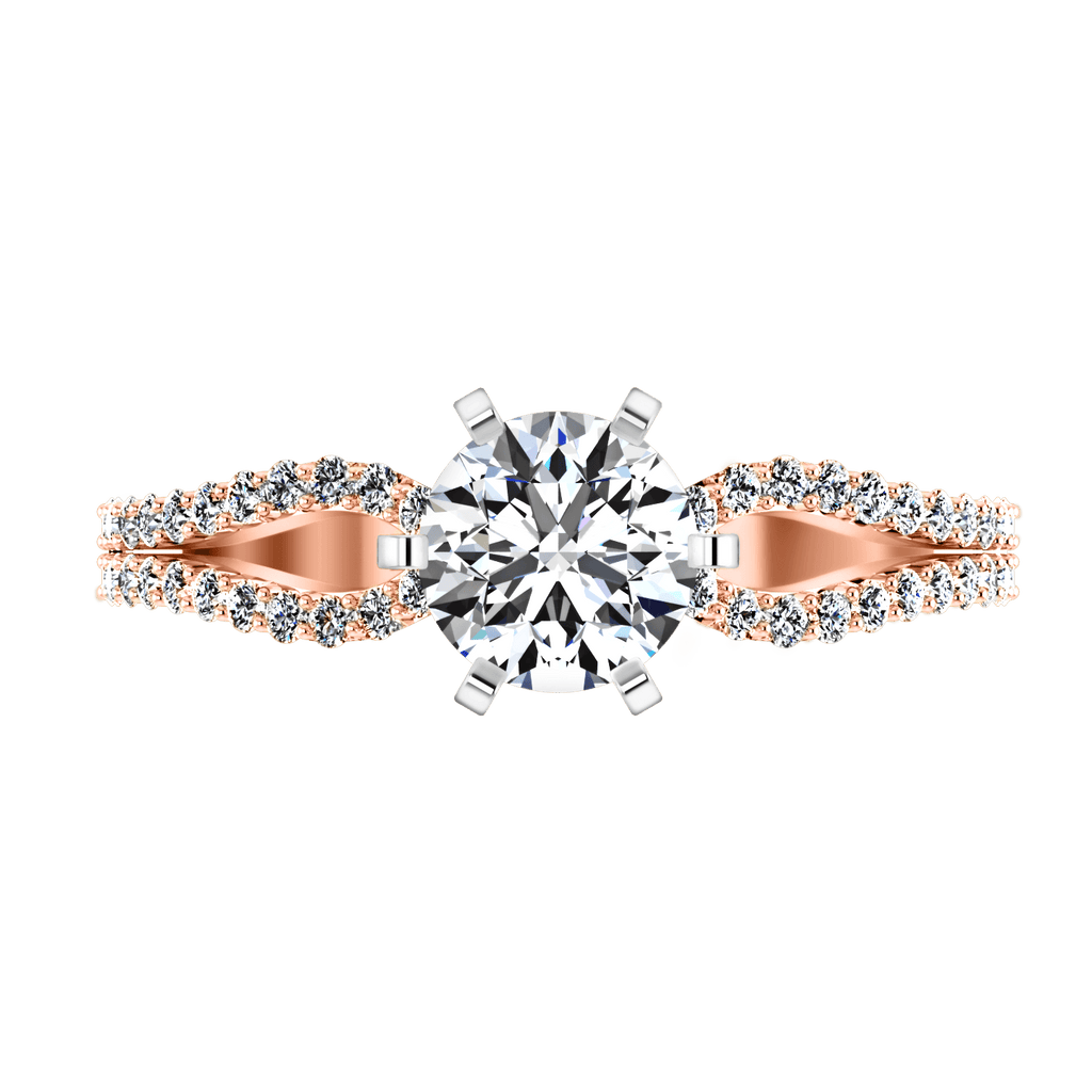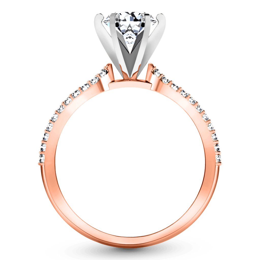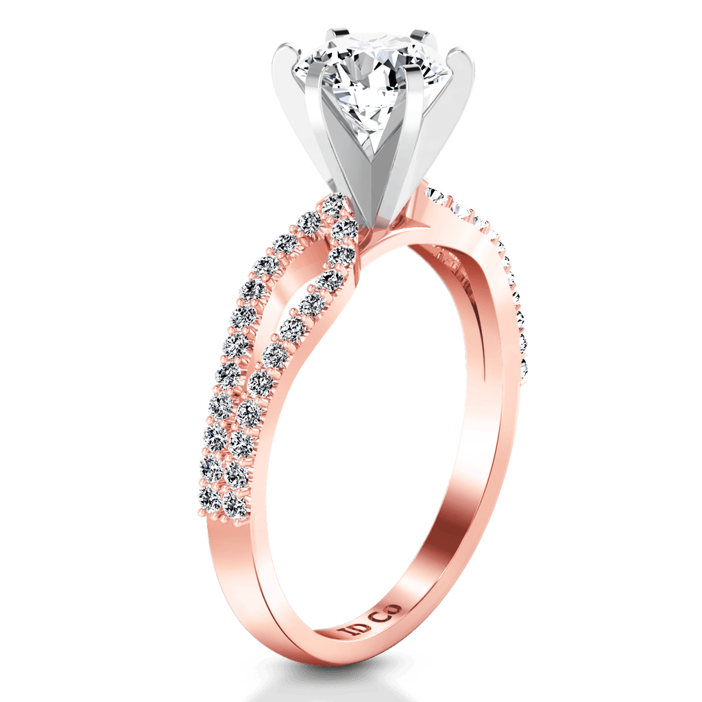 This eye catching setting consists of diamond accents curved around the opulent center stone. Featured with 0.29 carats of pave diamonds in 14k rose gold with an average width of 2.5mm . This ring is fully customizable, so pick your center diamond size, color and clarity and we will custom build it for you.