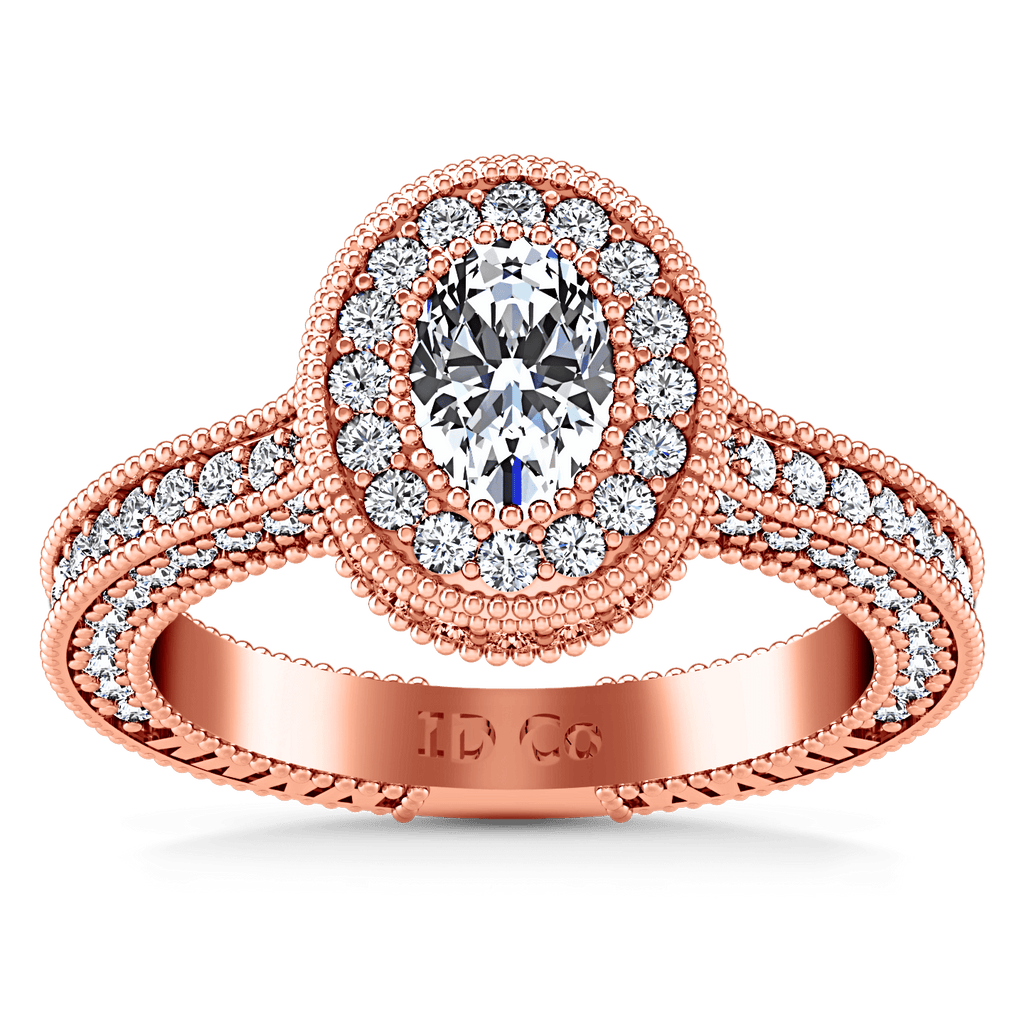 Halo Diamond Oval Engagement Ring Camille 14K Rose Gold