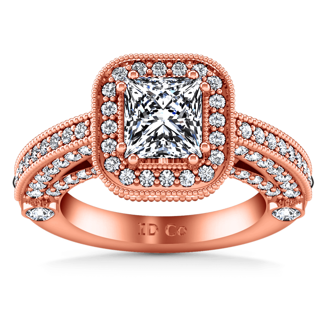 Halo Diamond Princess Cut Engagement Ring Lumiere 14K Rose Gold
