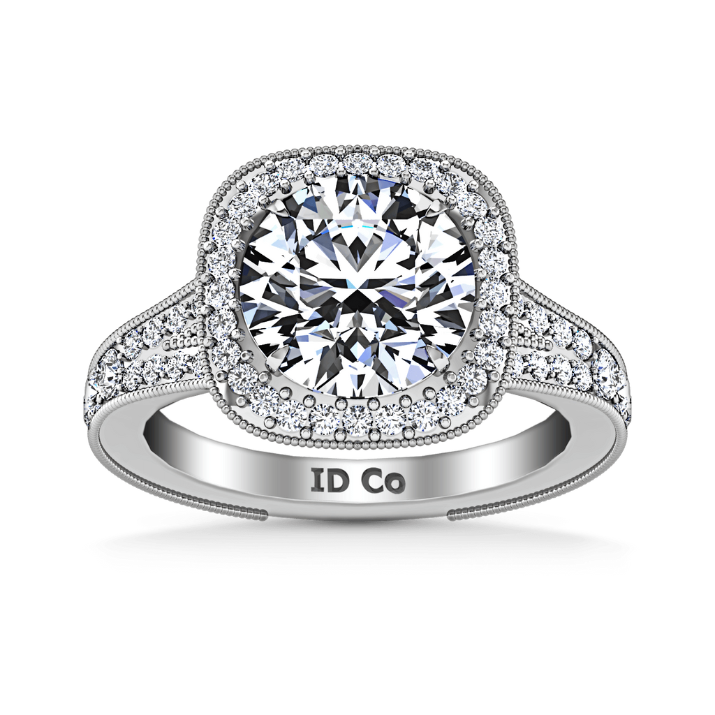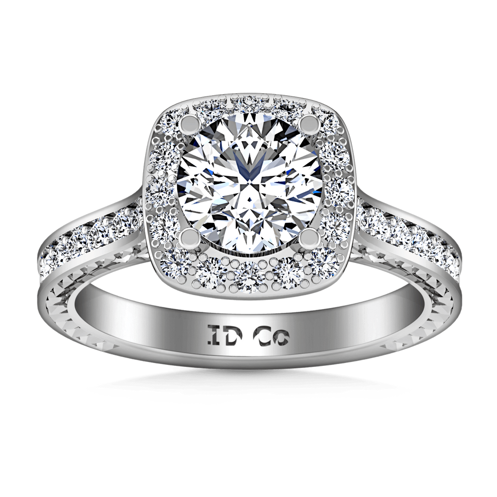 Round Diamond Pave Engagement Ring Amanda 14K White Gold