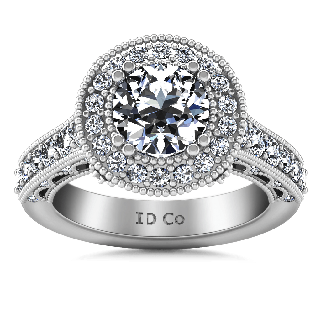 Round Diamond Halo Engagement Ring Irina 14K White Gold