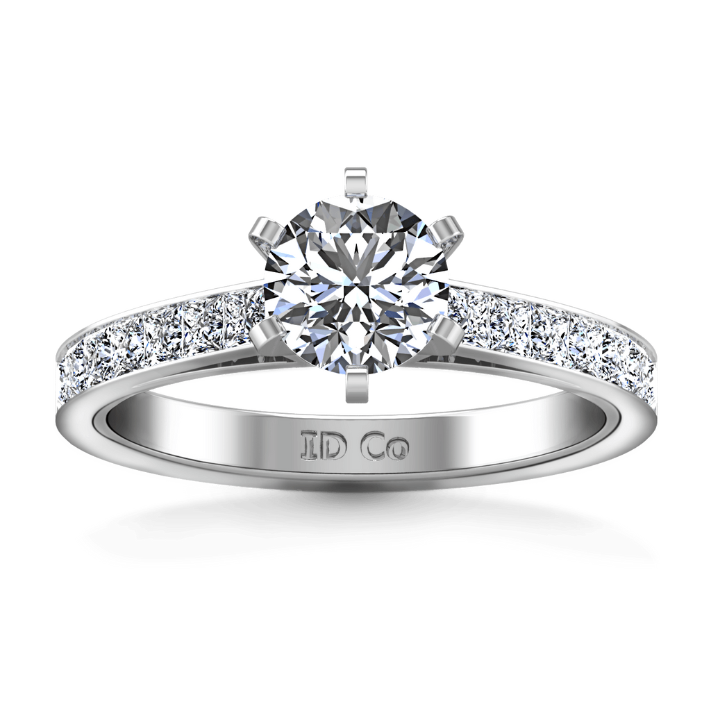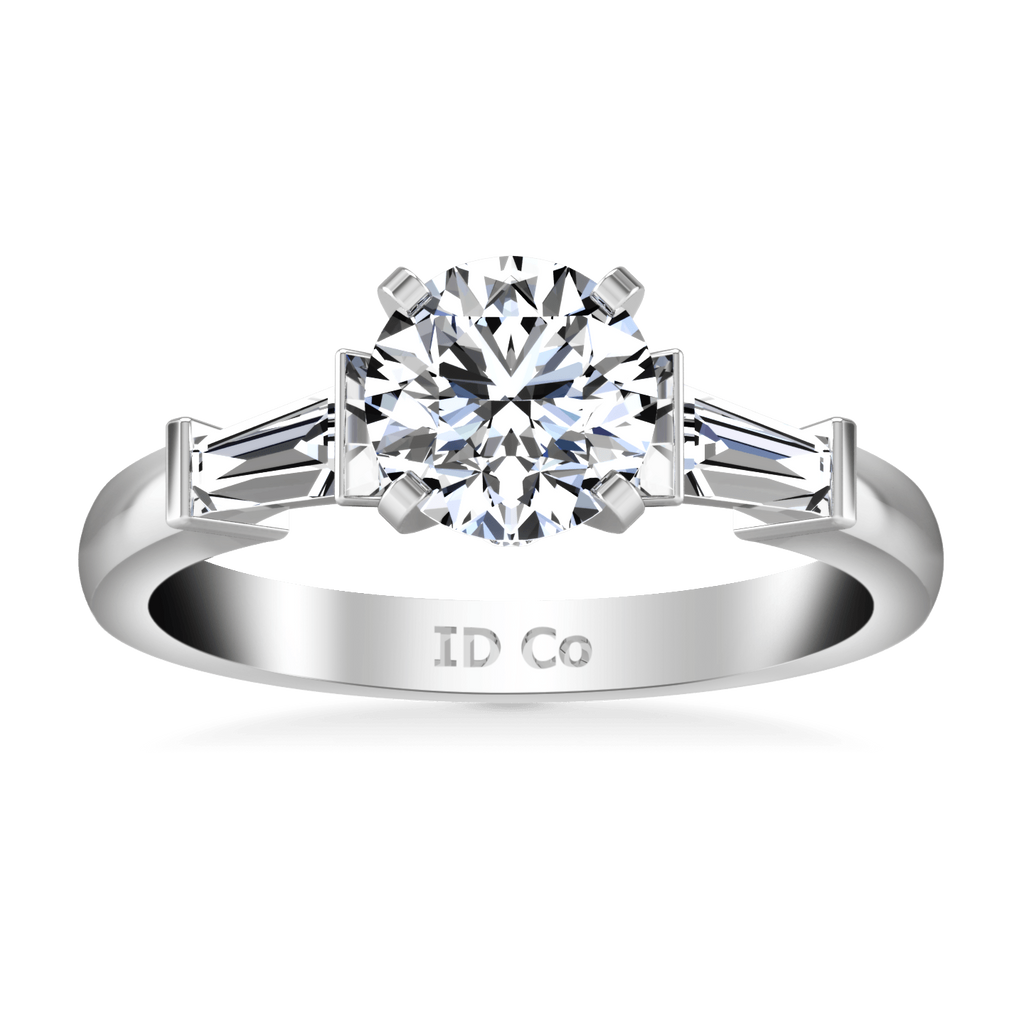 Round Diamond Pave Engagement Ring Classic Baguette 14K White Gold
