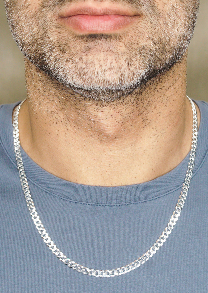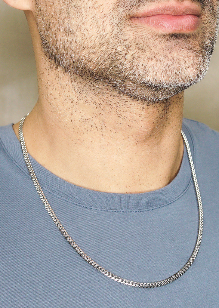 Silver Chain - Mens White Chain / Miami Cuban Link / 4 MM