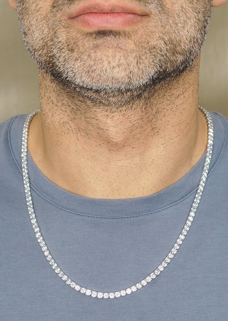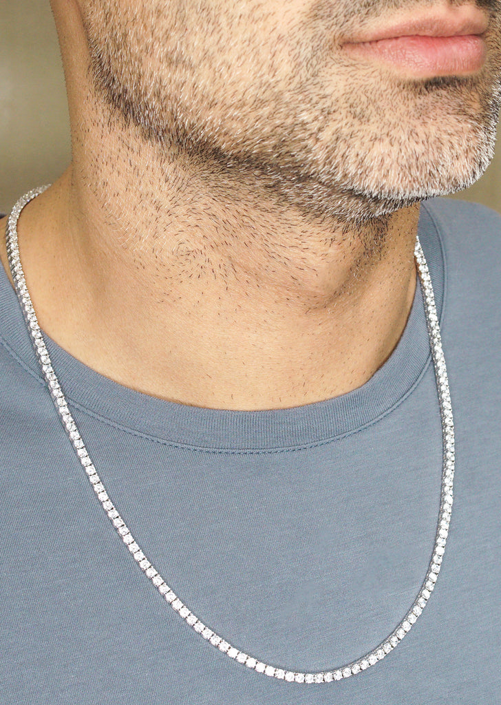 Silver Chain - Mens White Tennis Chain / Necklace - 4 MM