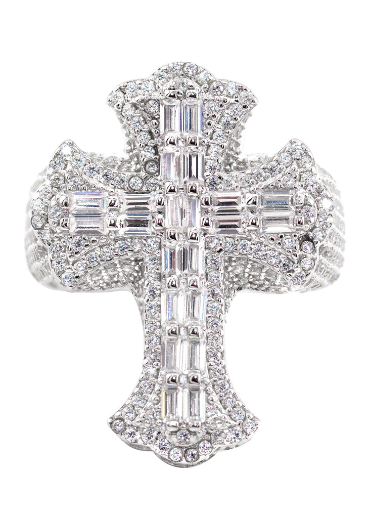 Mens Silver Baguette Cross Ring | Appx 10.8 Grams