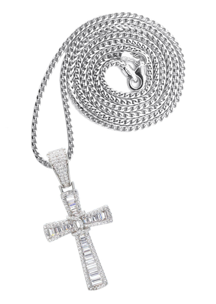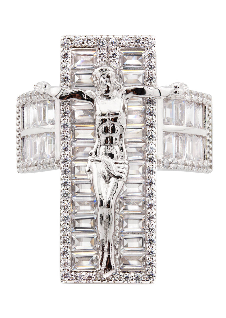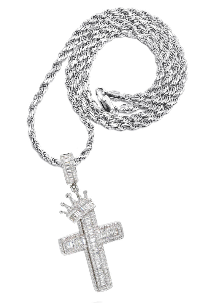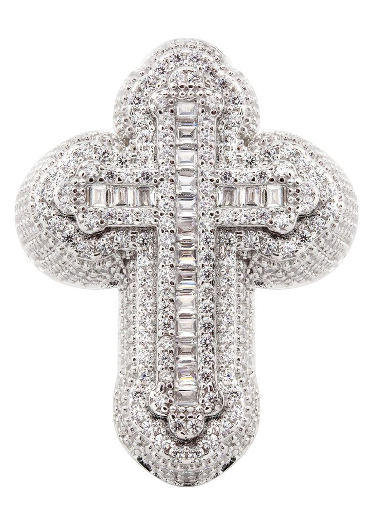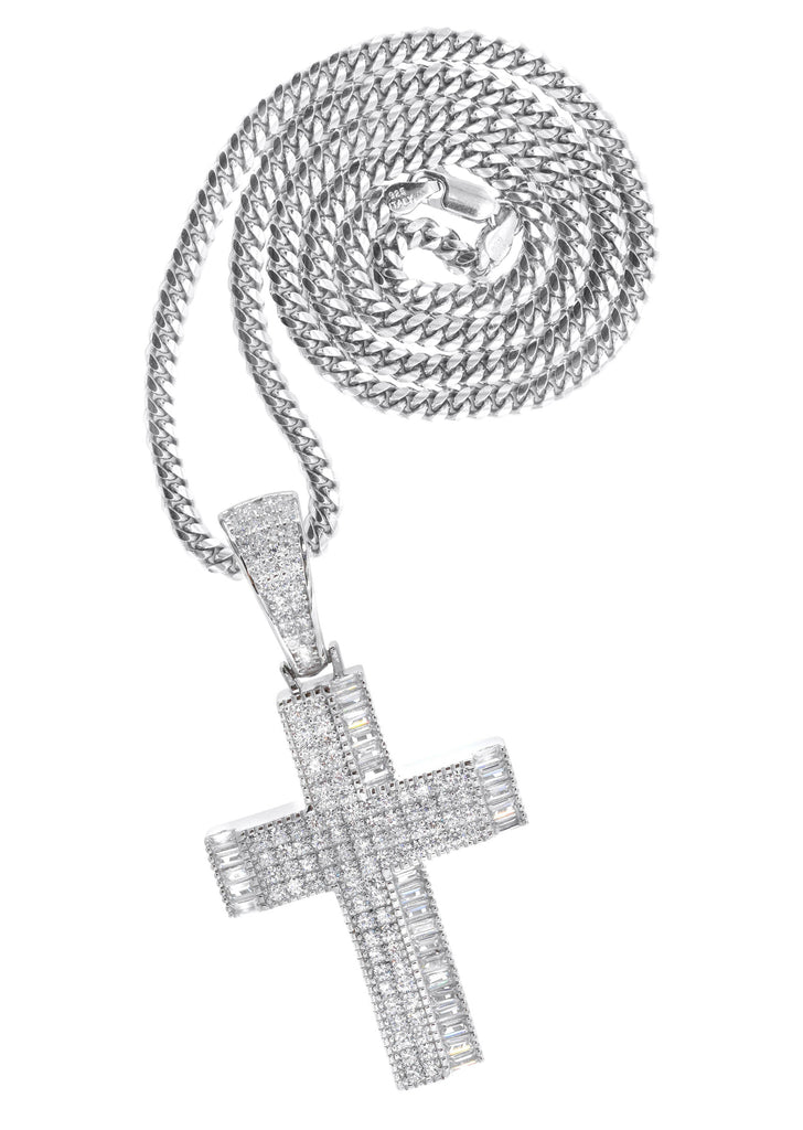 Silver Pendant - White Gold Cross Baguette Pendant | Appx 11 Grams