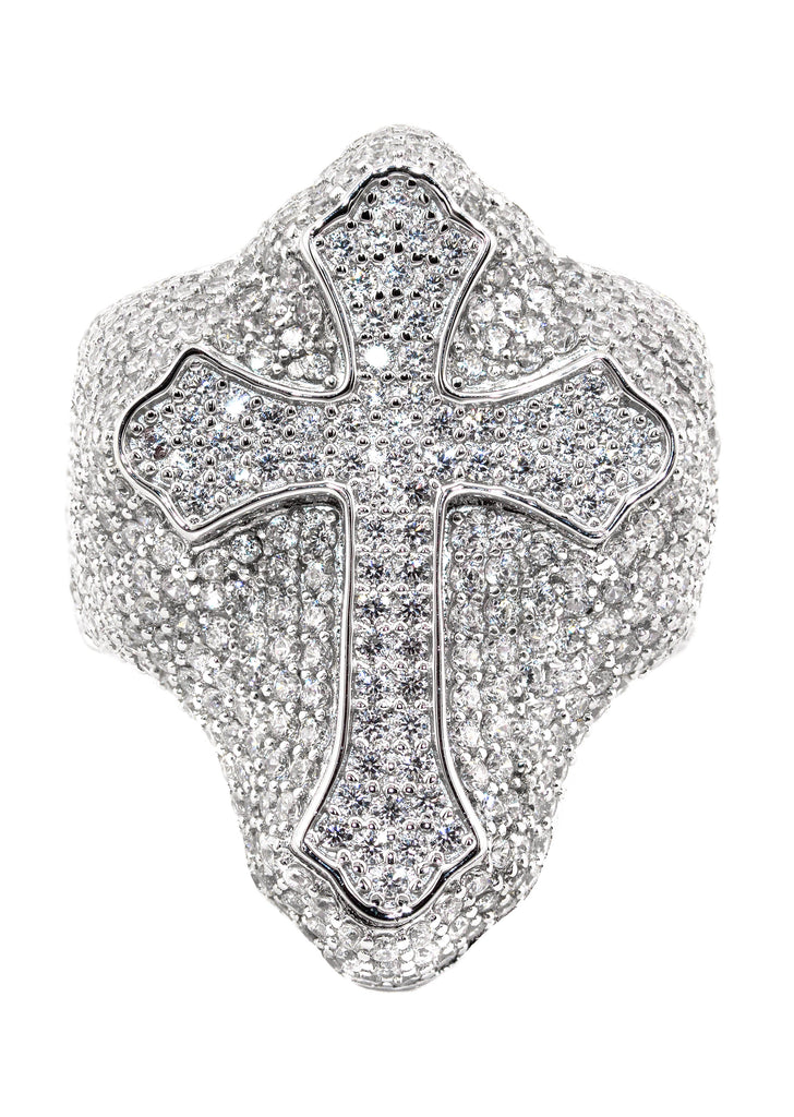 Mens Silver CZ Cross Ring | Appx 10 Grams
