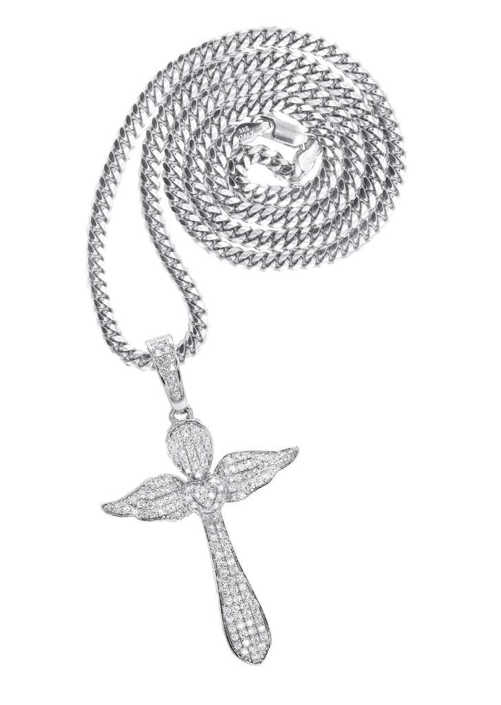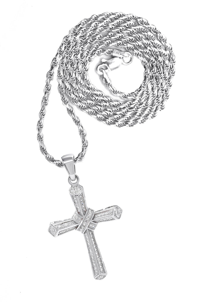 Silver Pendant - White Gold Cross Pendant | Appx 8.2 Grams