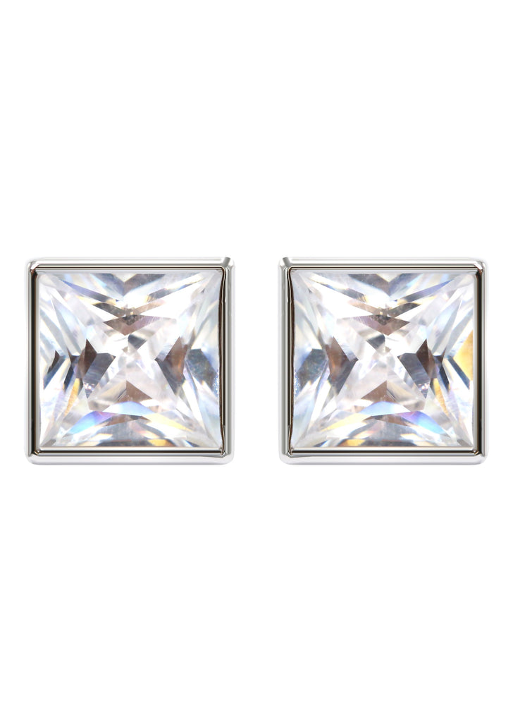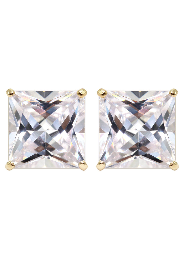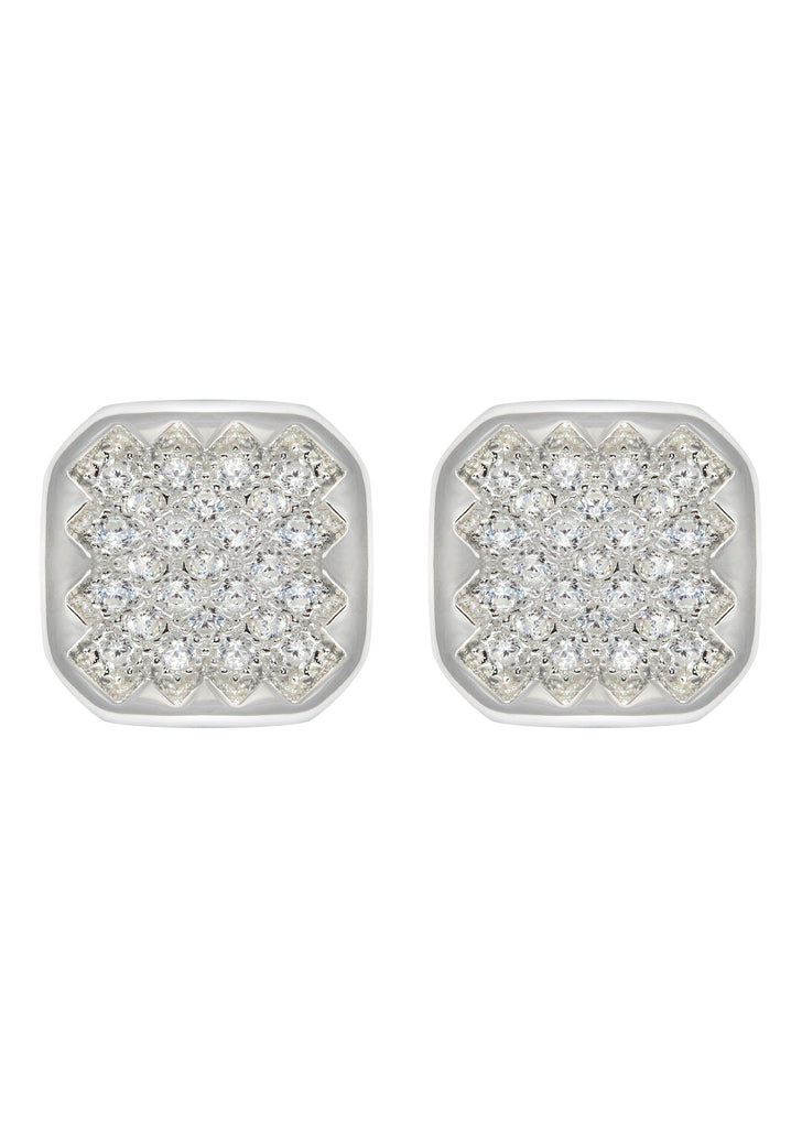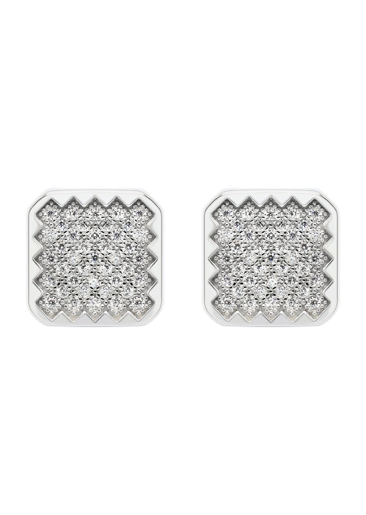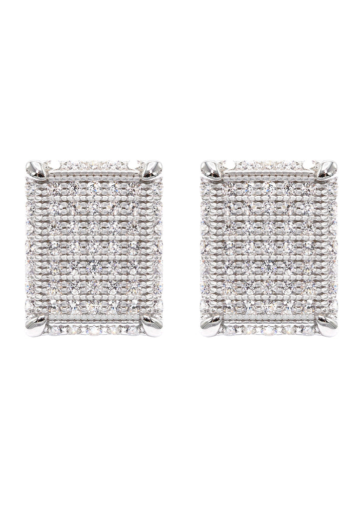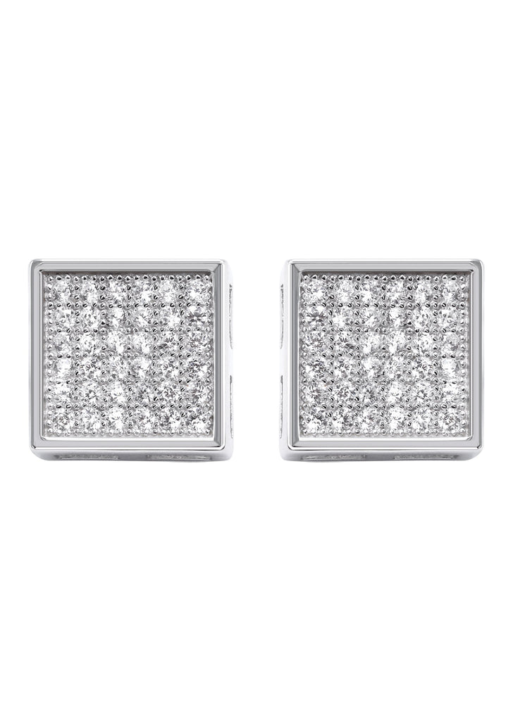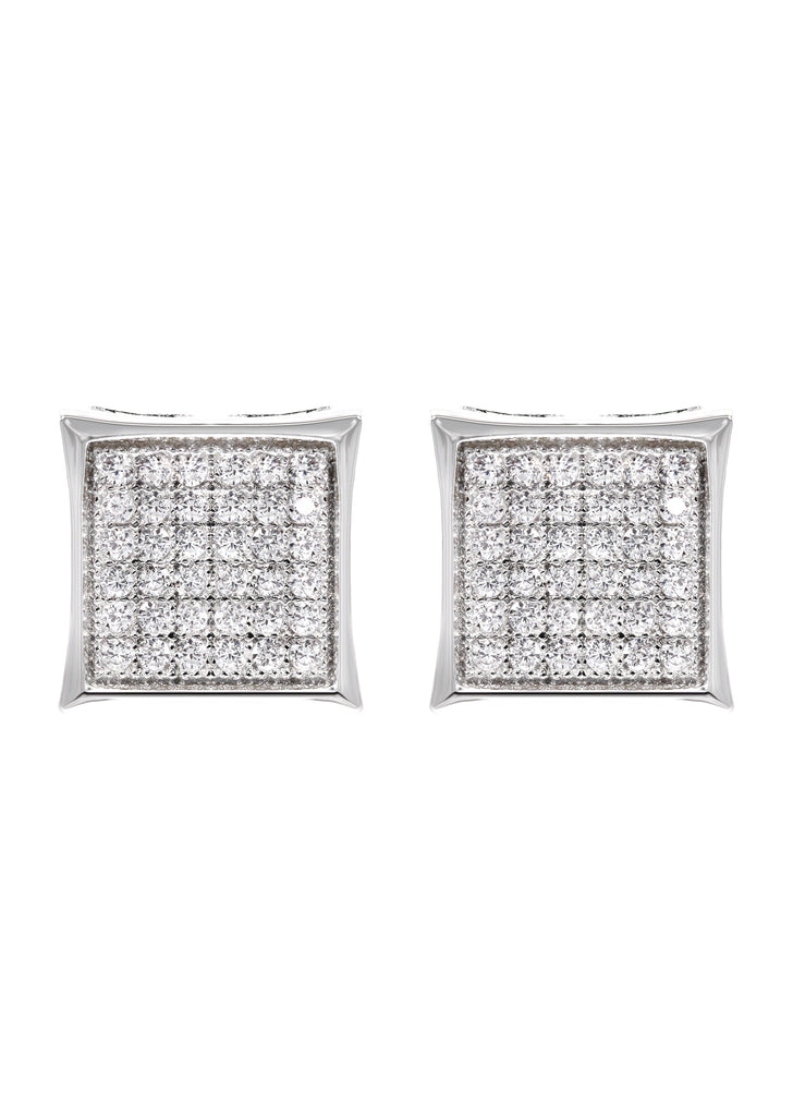 Silver Micro Pave Clear Sun Square CZ Stud Earrings | Appx. 3 Grams