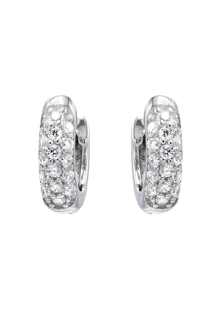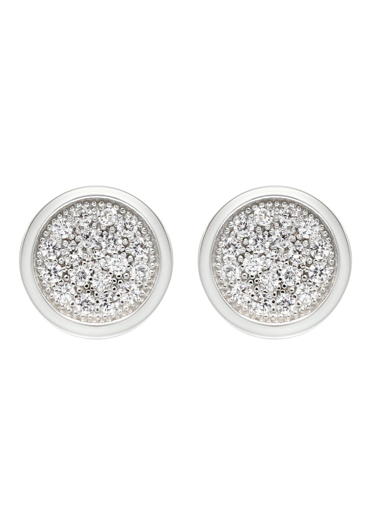 Silver Micro Pave Clear Circle CZ Stud Earrings | Appx. 3 Grams