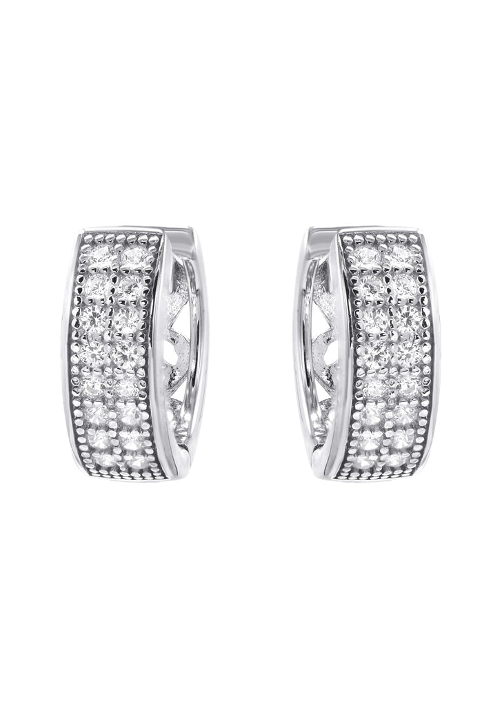 Silver Micro Pave Clear Round CZ Earrings | Appx. 3.5 Grams