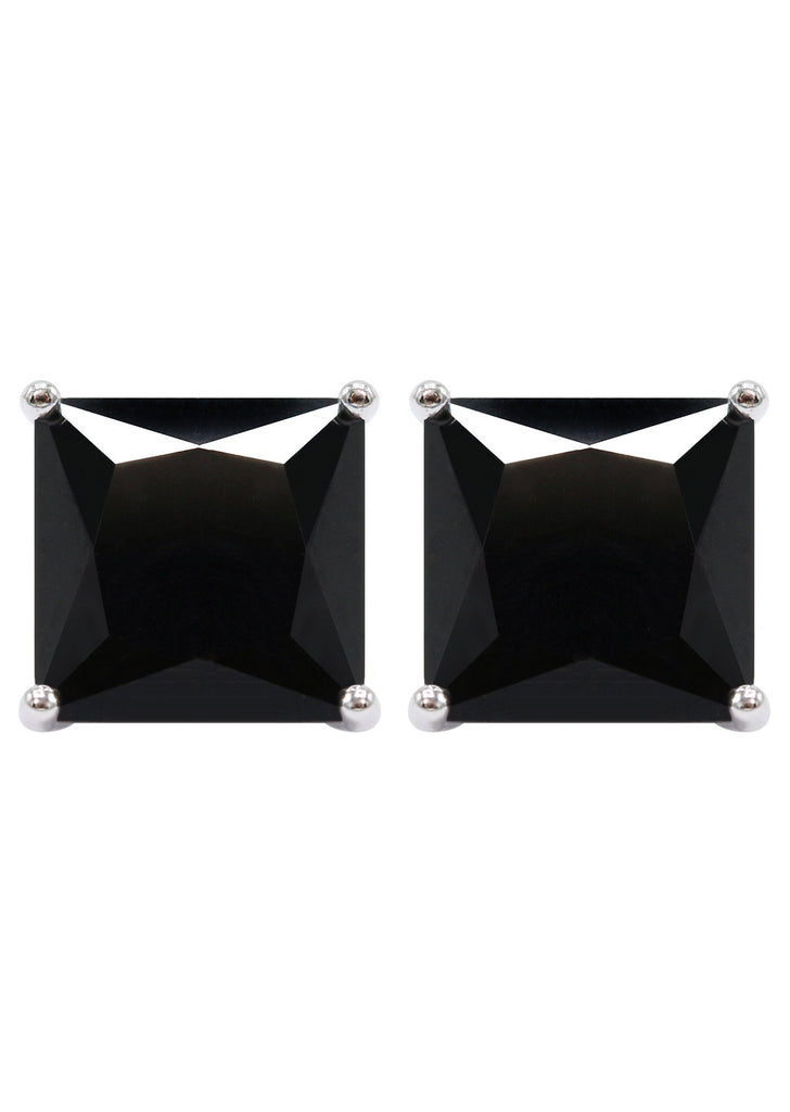 Silver Square Black CZ Stud Earrings | 8 MM | Appx. 2.5 Grams
