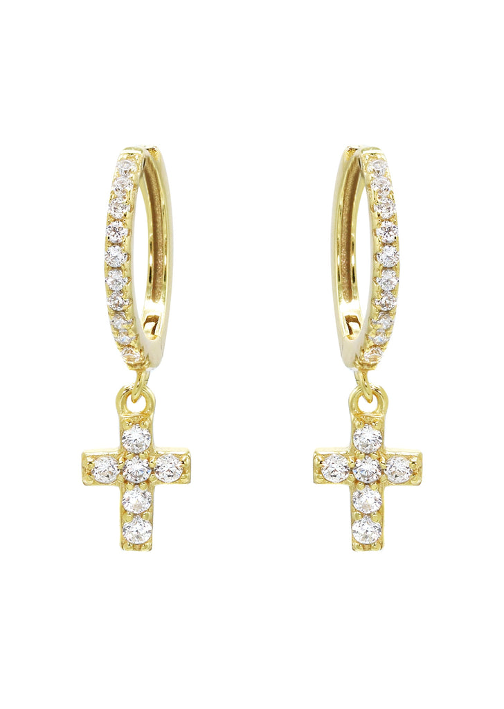 Gold Cross CZ Hoop Earrings | Appx. 1.3 Grams