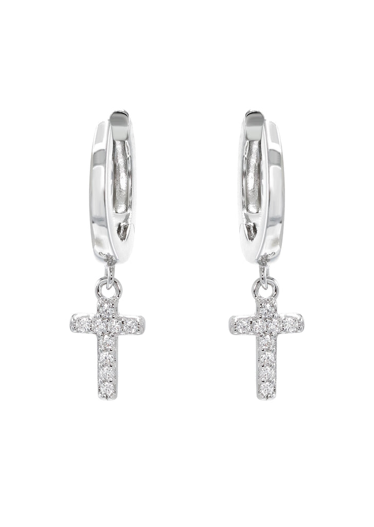 Silver CZ Hoop Cross Earring | Appx. 2 Grams