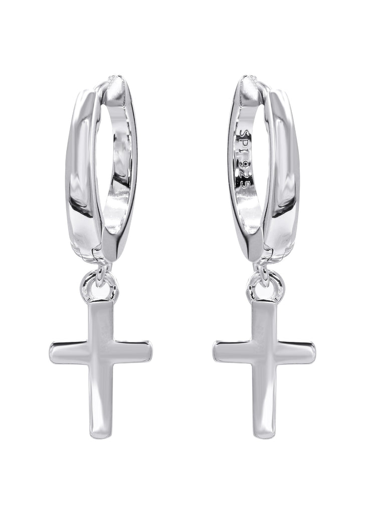 Silver Hoop Cross Earrings | Appx. 2 Grams