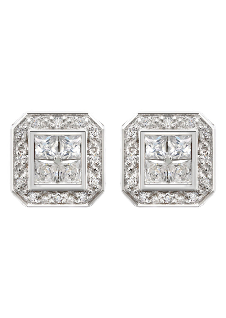 Silver Square Halo Clear CZ Stud Earrings | Appx. 5 Grams