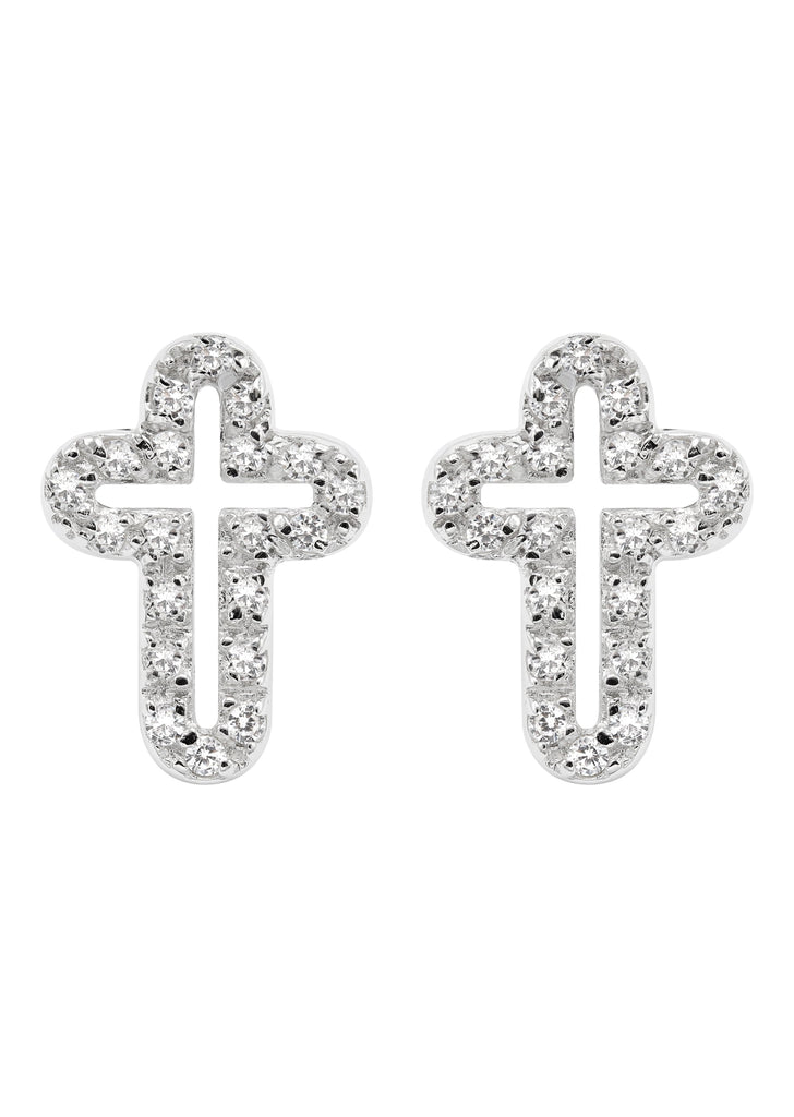 Silver Open Cross Plated Clear CZ Stud Earrings | Appx. 2 Grams