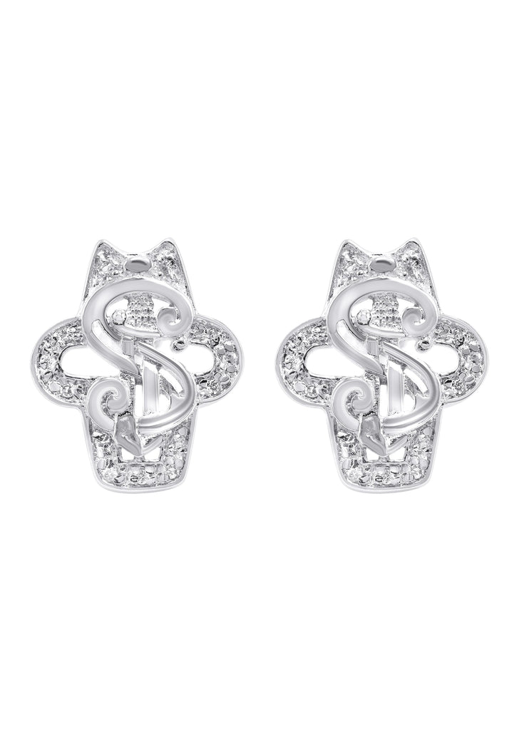 Silver Dollar Sign CZ Stud Earrings | Appx. 5.6 Grams