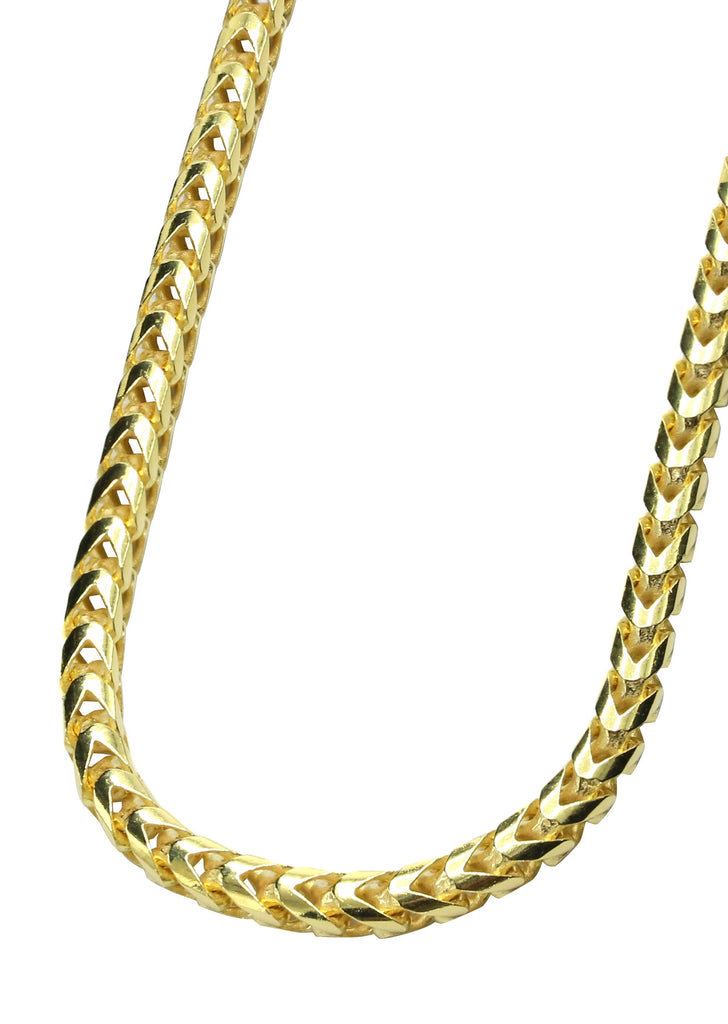 The silver gold Franco chain is built with tightly woven V-shaped links, giving it a sleek and modern style. It’s durable, flexible, and perfect for pendants or solo wear.