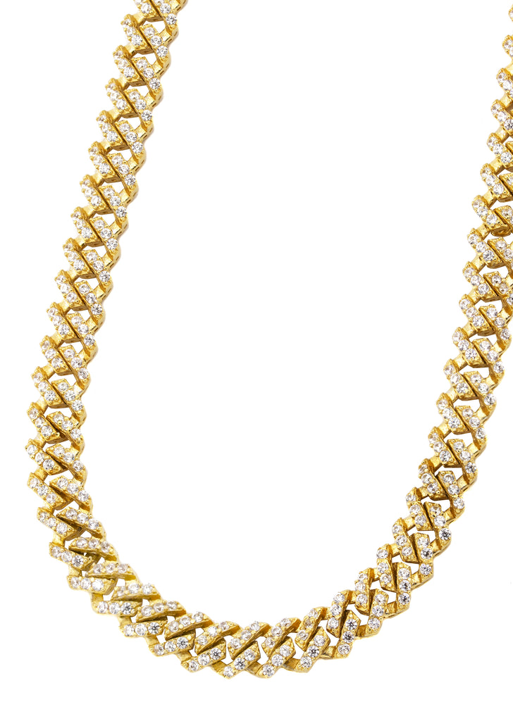 Silver Chain - Hollow Gold Iced Out Prong Cuban Link