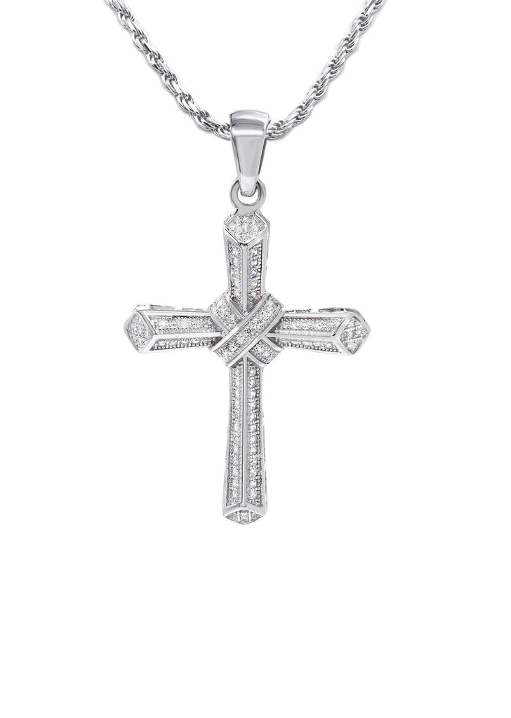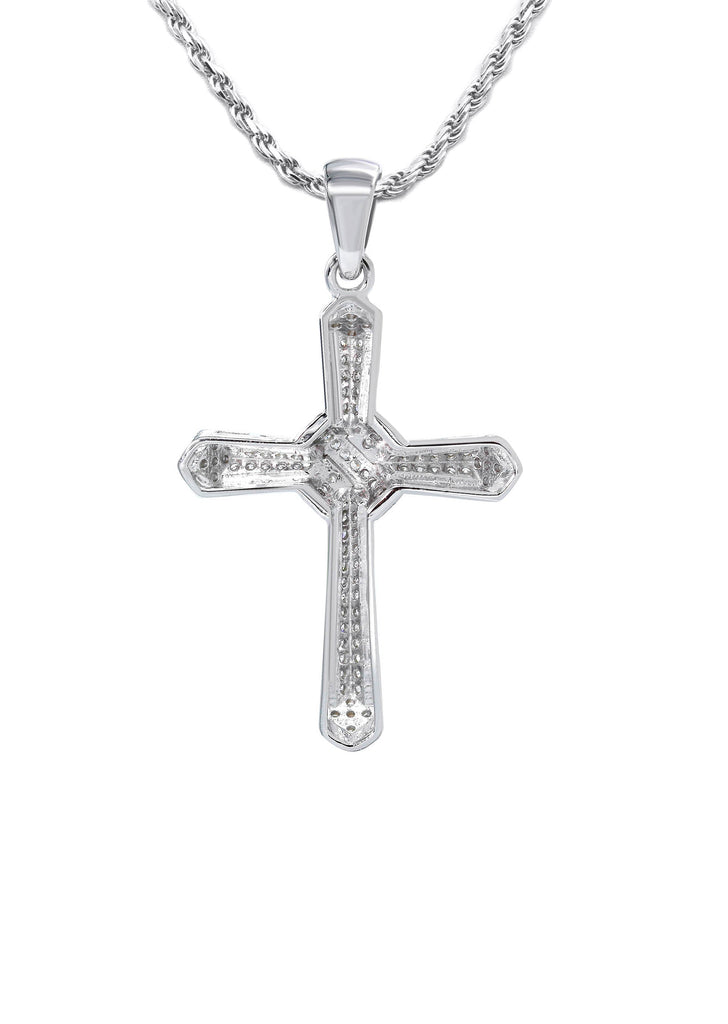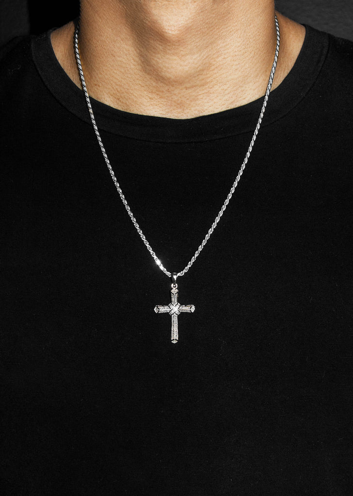 Pure Silver (925) Cross Pendant with Rope Chain. Rhodium bonded 6 times to provide optimum quality. The necklace is fully customizable, so you may pick your length.