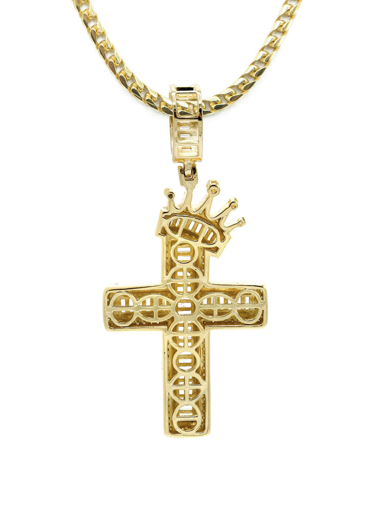 Silver Necklace - Gold Crown Cross Baguette Necklace | 23.9 Grams