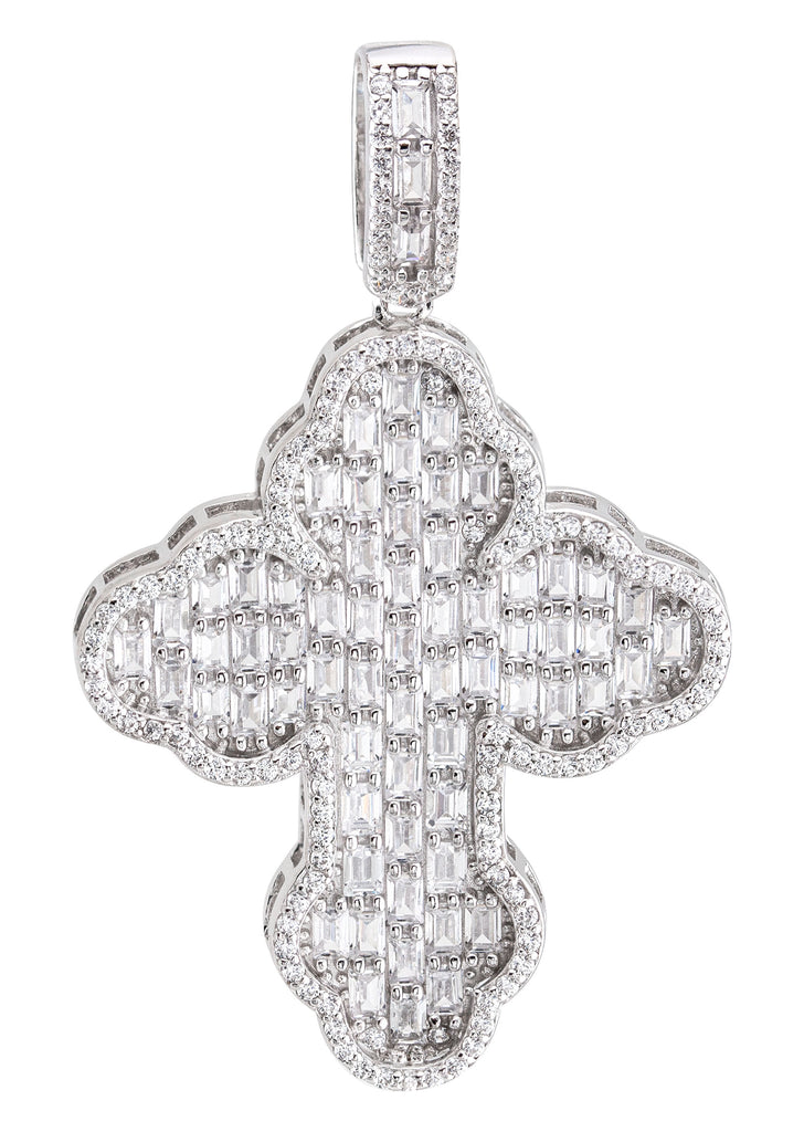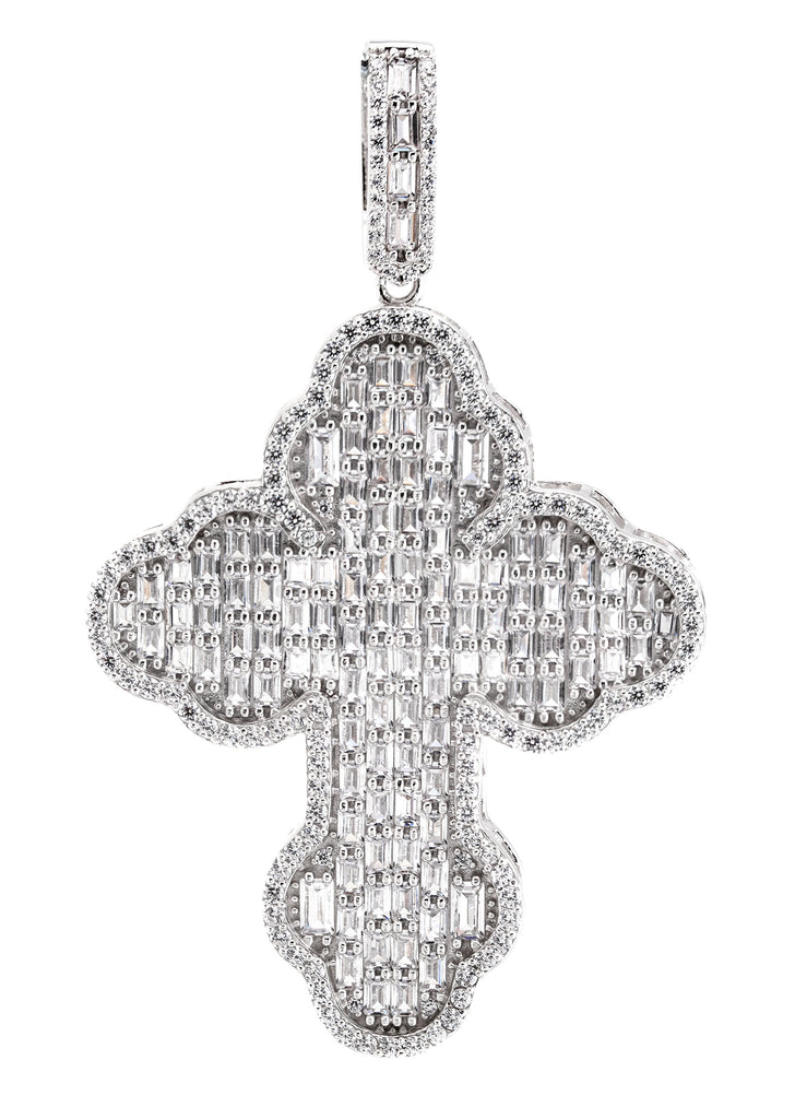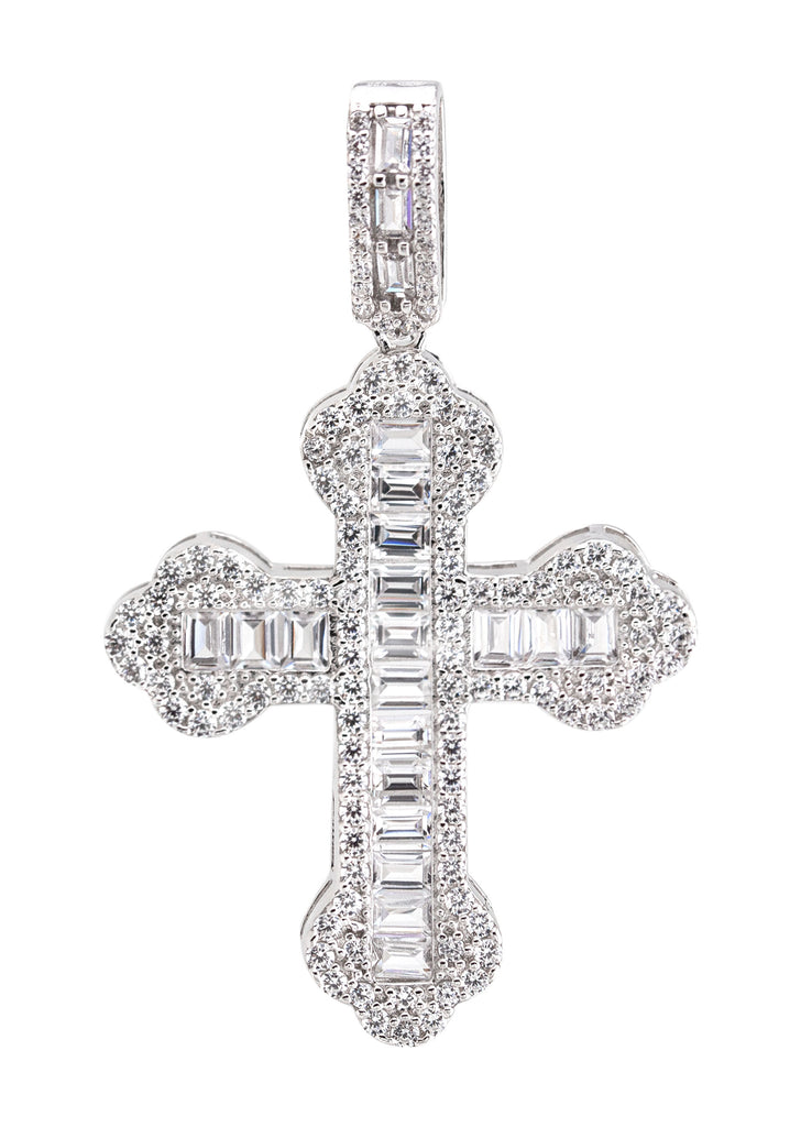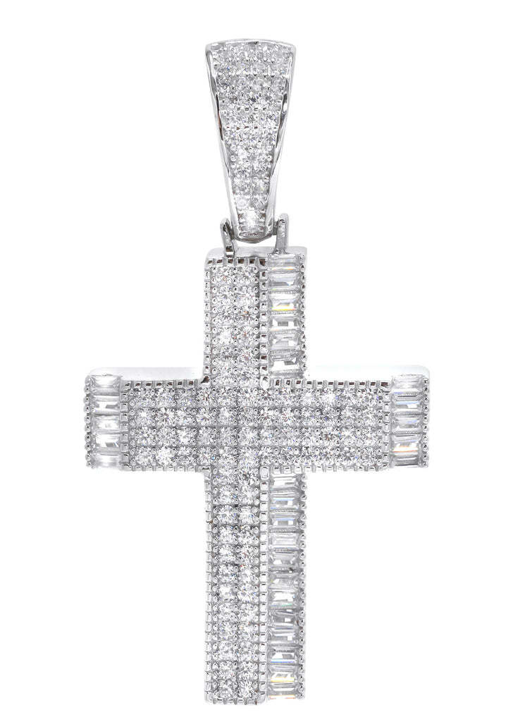 Silver Pendant - White Gold Cross Baguette Pendant | Appx 11 Grams