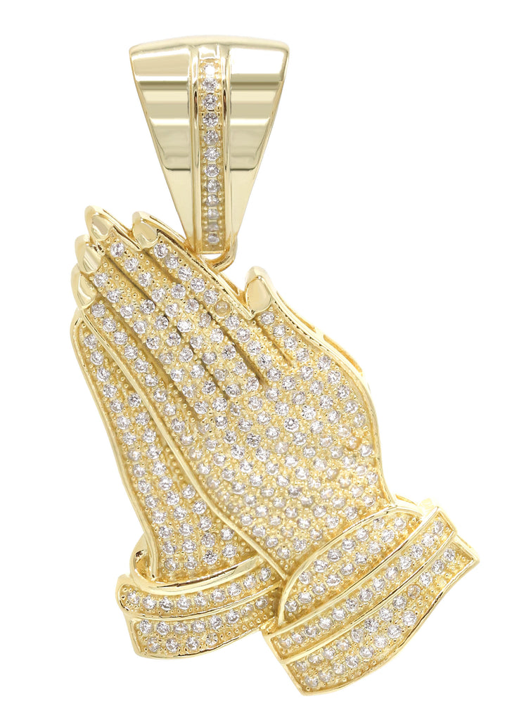 Silver Pendant - Gold Praying Hand Pendant | Appx 9.2 Grams