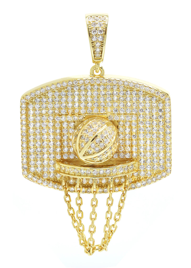 Silver Pendant - Gold Basketball Hoop Pendant | Appx 11.2 Grams