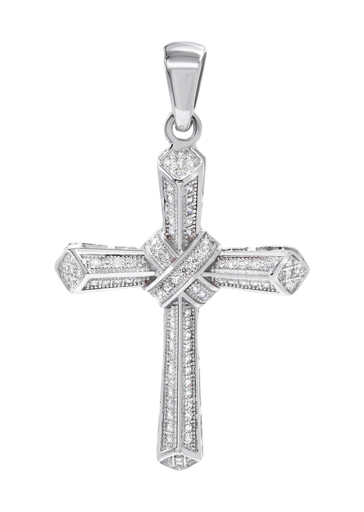 Silver Pendant - White Gold Cross Pendant | Appx 8.2 Grams